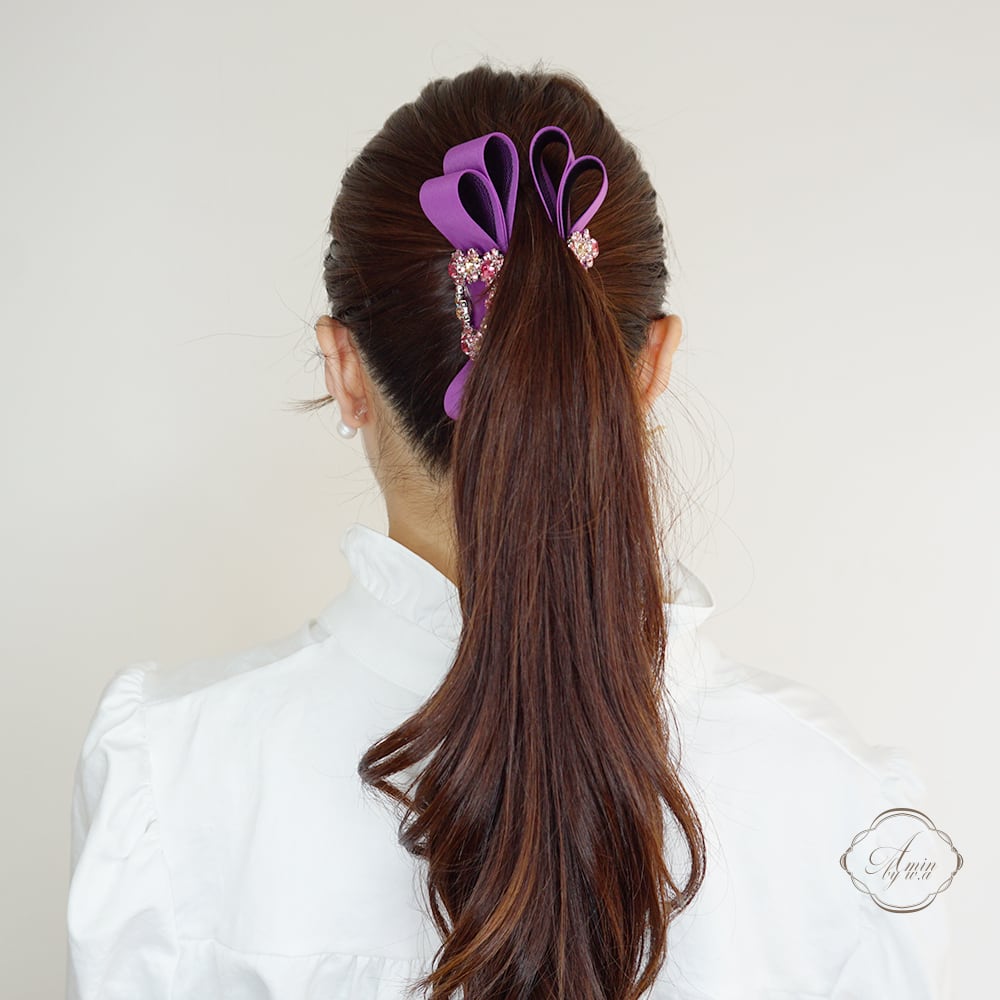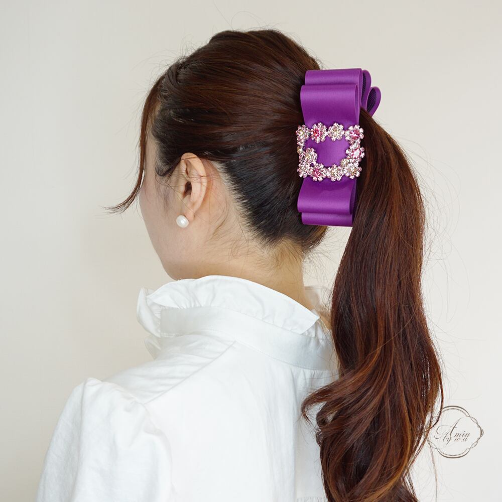 Amin by w.a luxe クリスタルサテンバナナクリップ flower purple