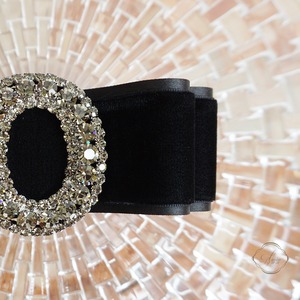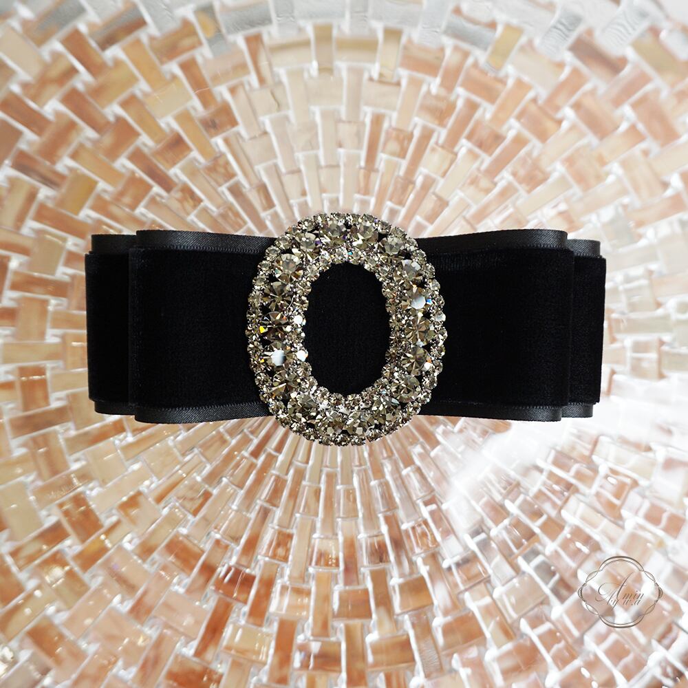 バッグルは、輝きが美しい総クリスタルをリボンセンターに施しました。
