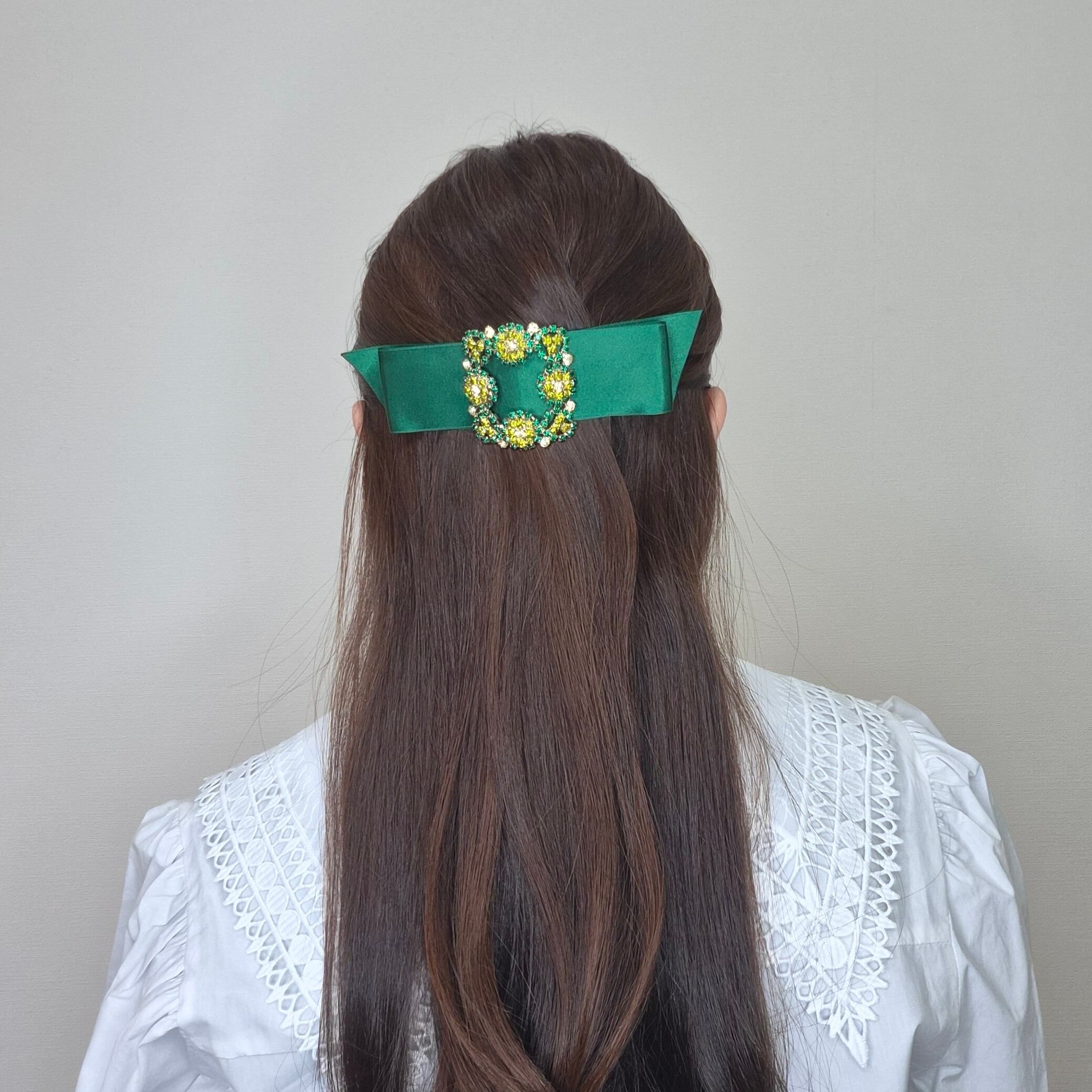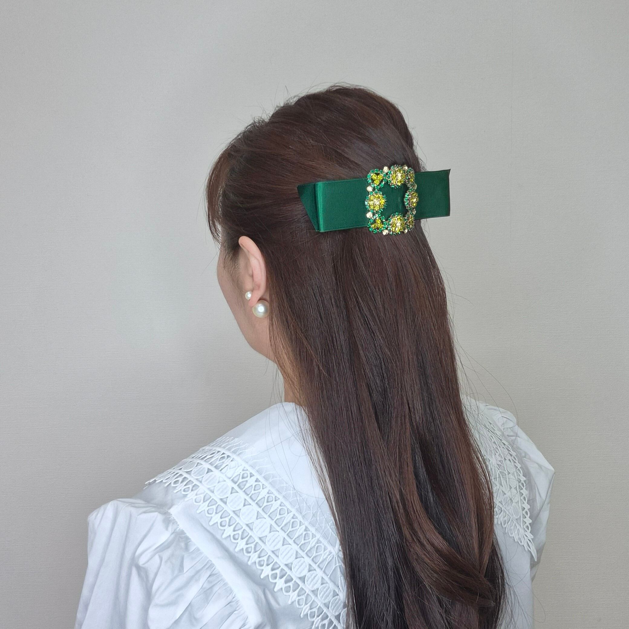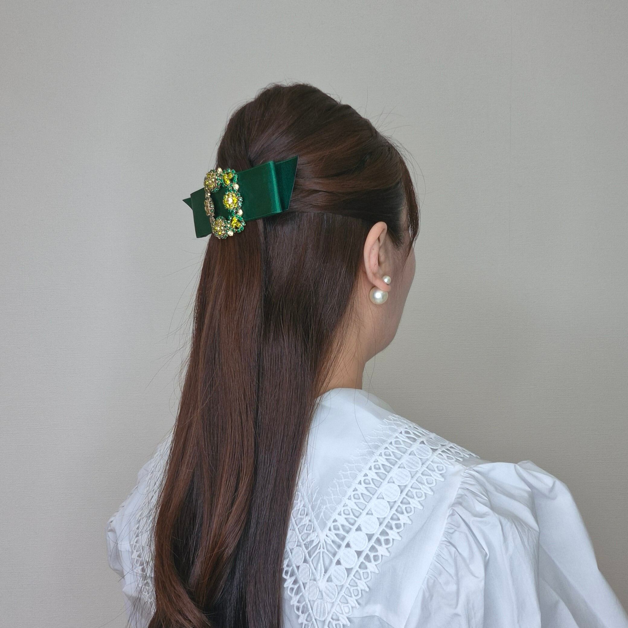 【受注3月3日~3月9日迄】Amin by w.a luxe フラワークリスタルサテンバレッタ green
