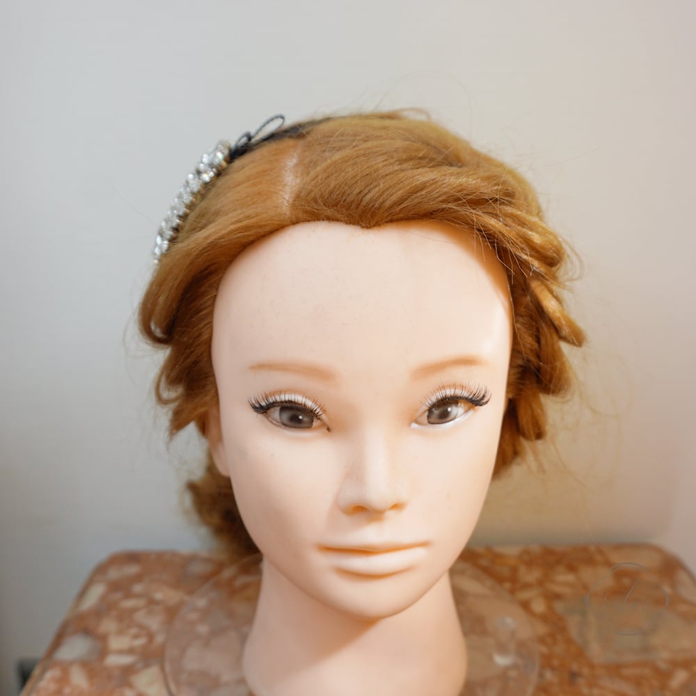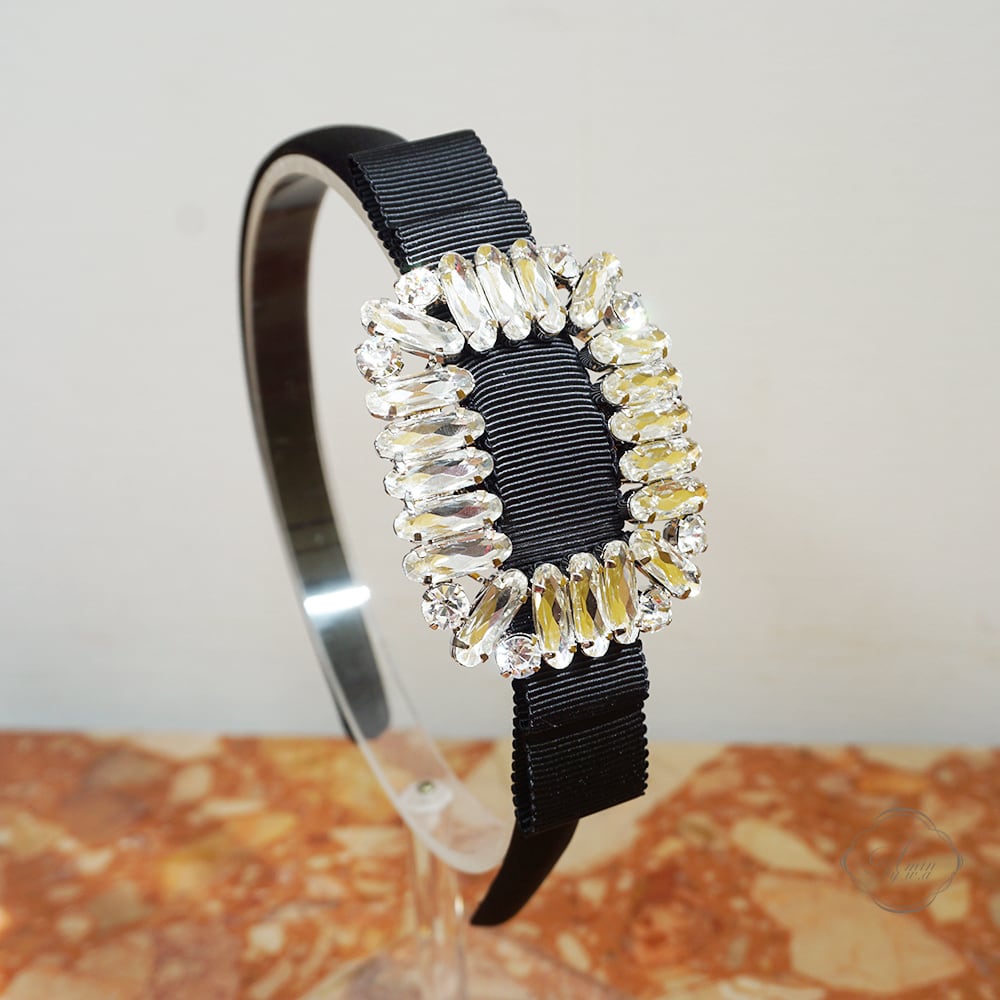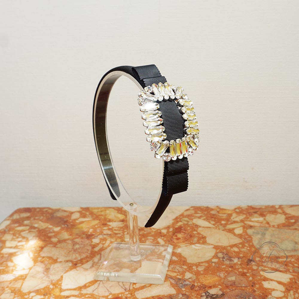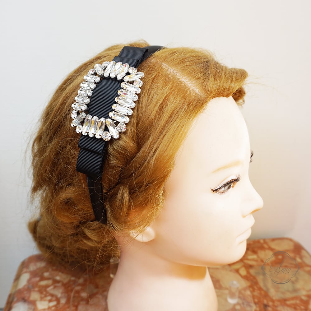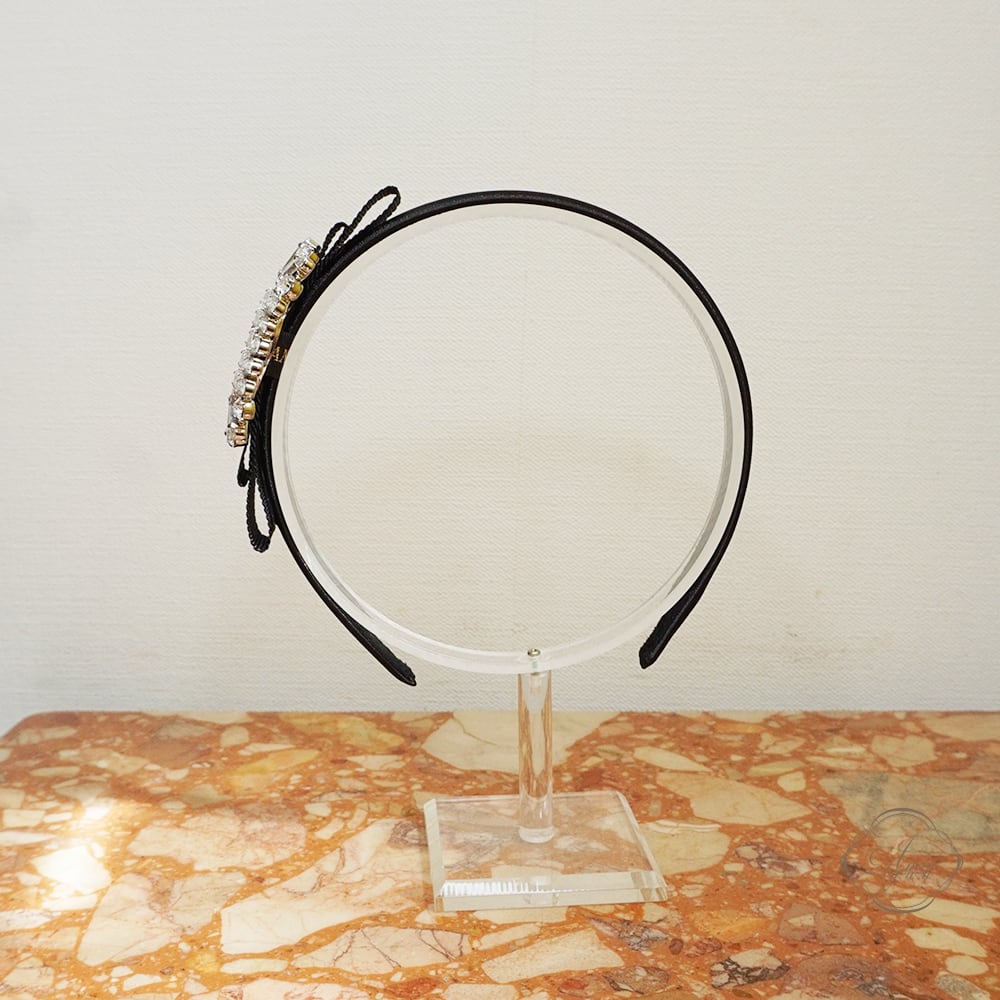 Amin by w.a luxe スクエアクリスタルグログランリボンカチューシャ M
