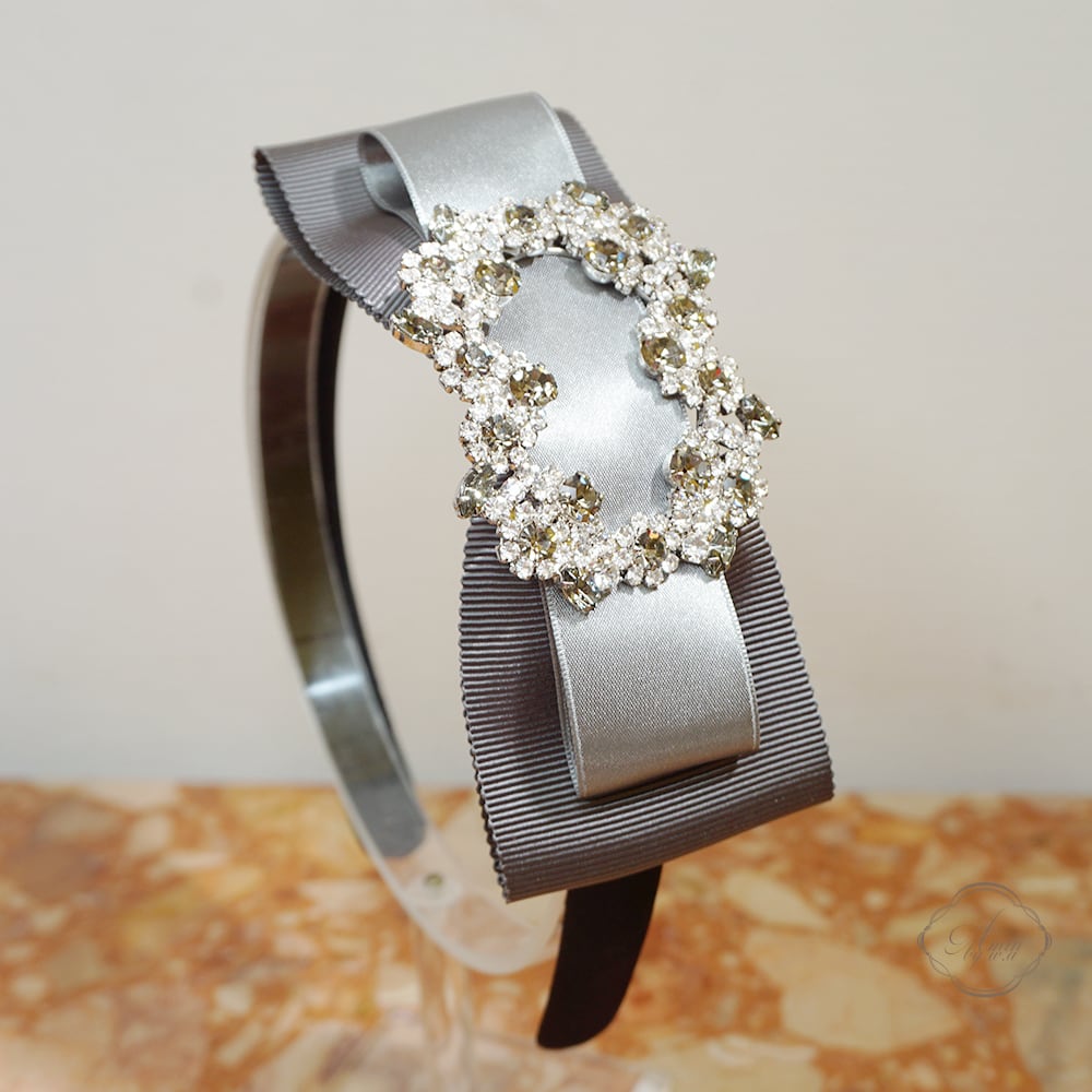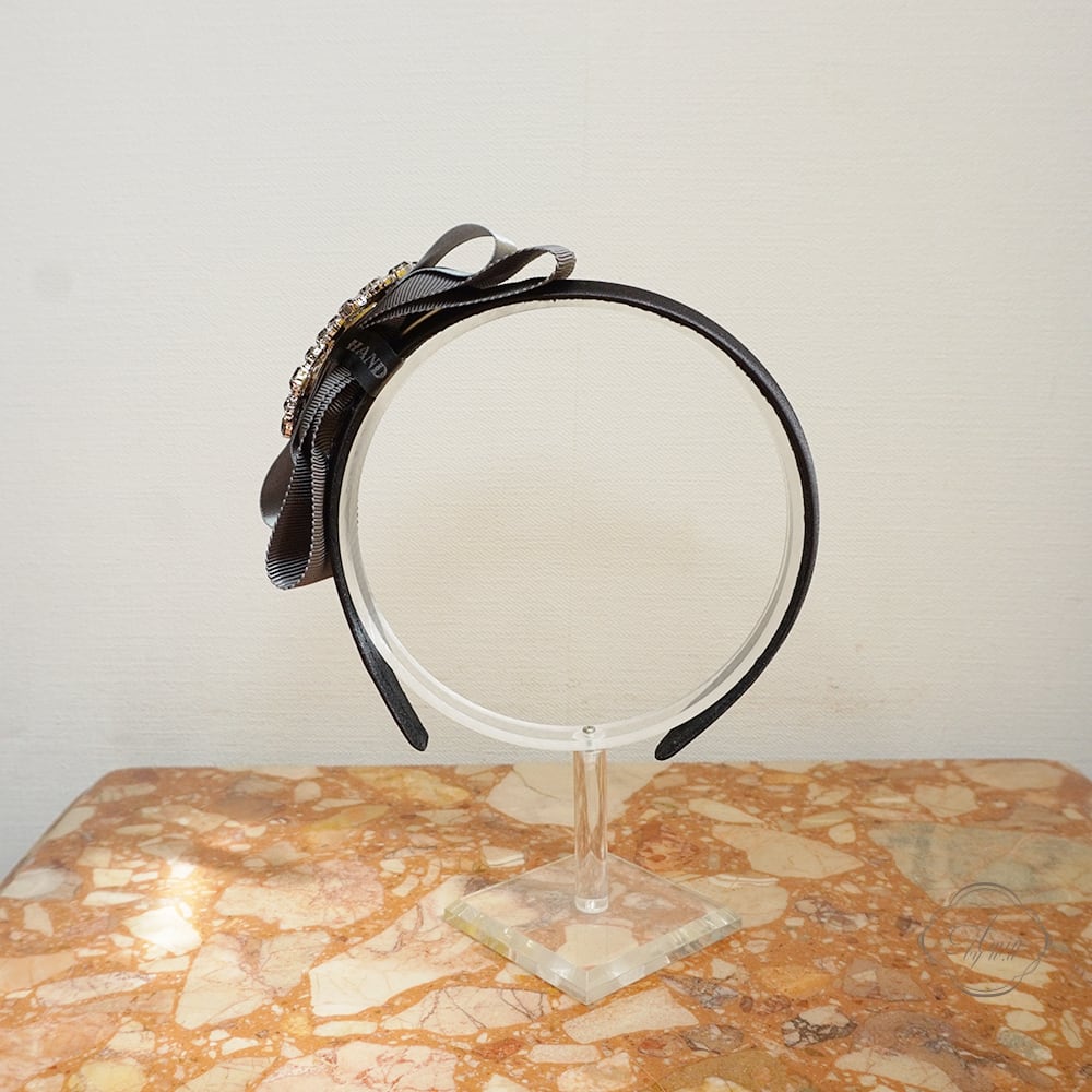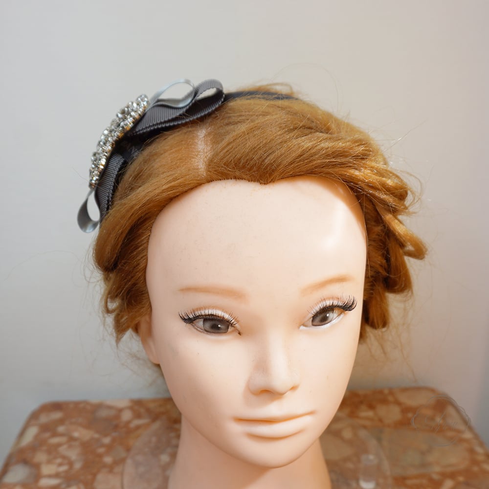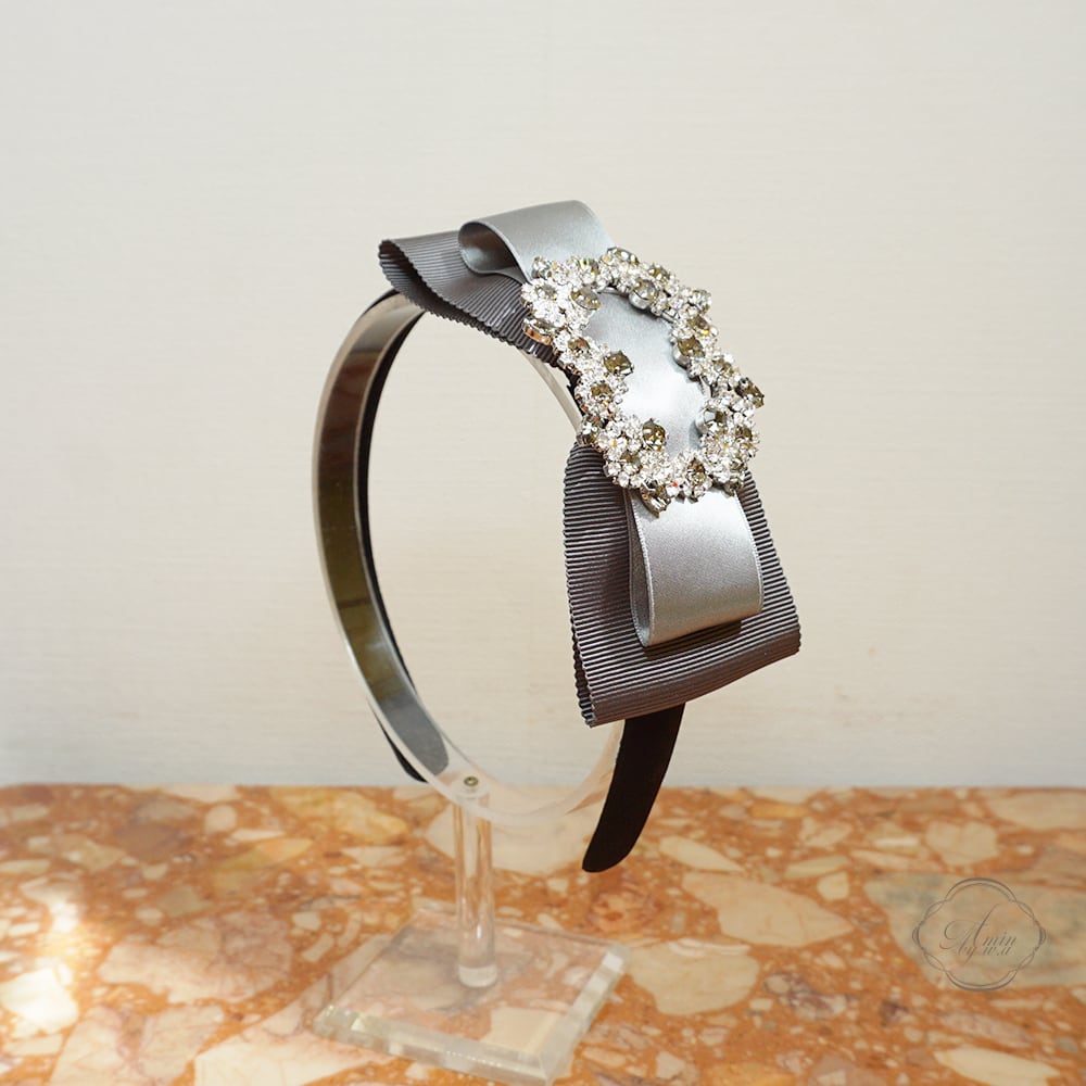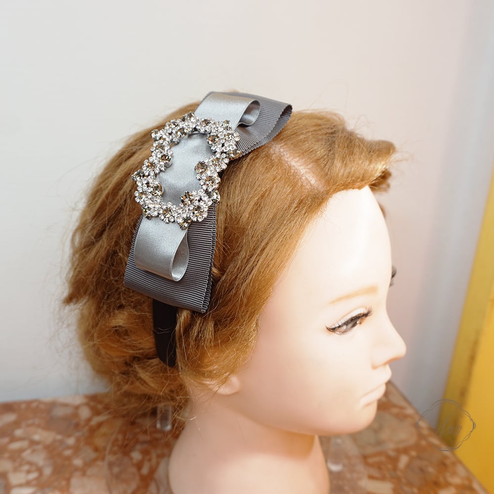 Amin by w.a luxe フラワークリスタルグログランサテンミックスリボンカチューシャ gray
