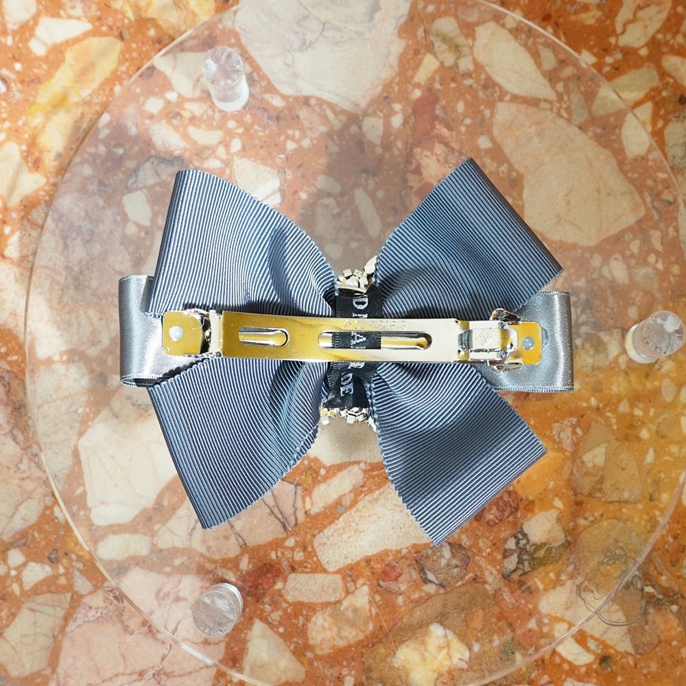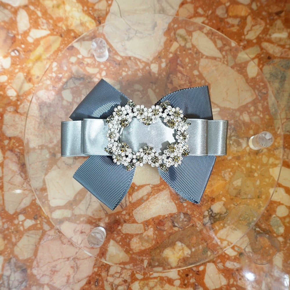 Amin by w.a luxe フラワークリスタルグログランサテンミックスリボンバレッタ gray